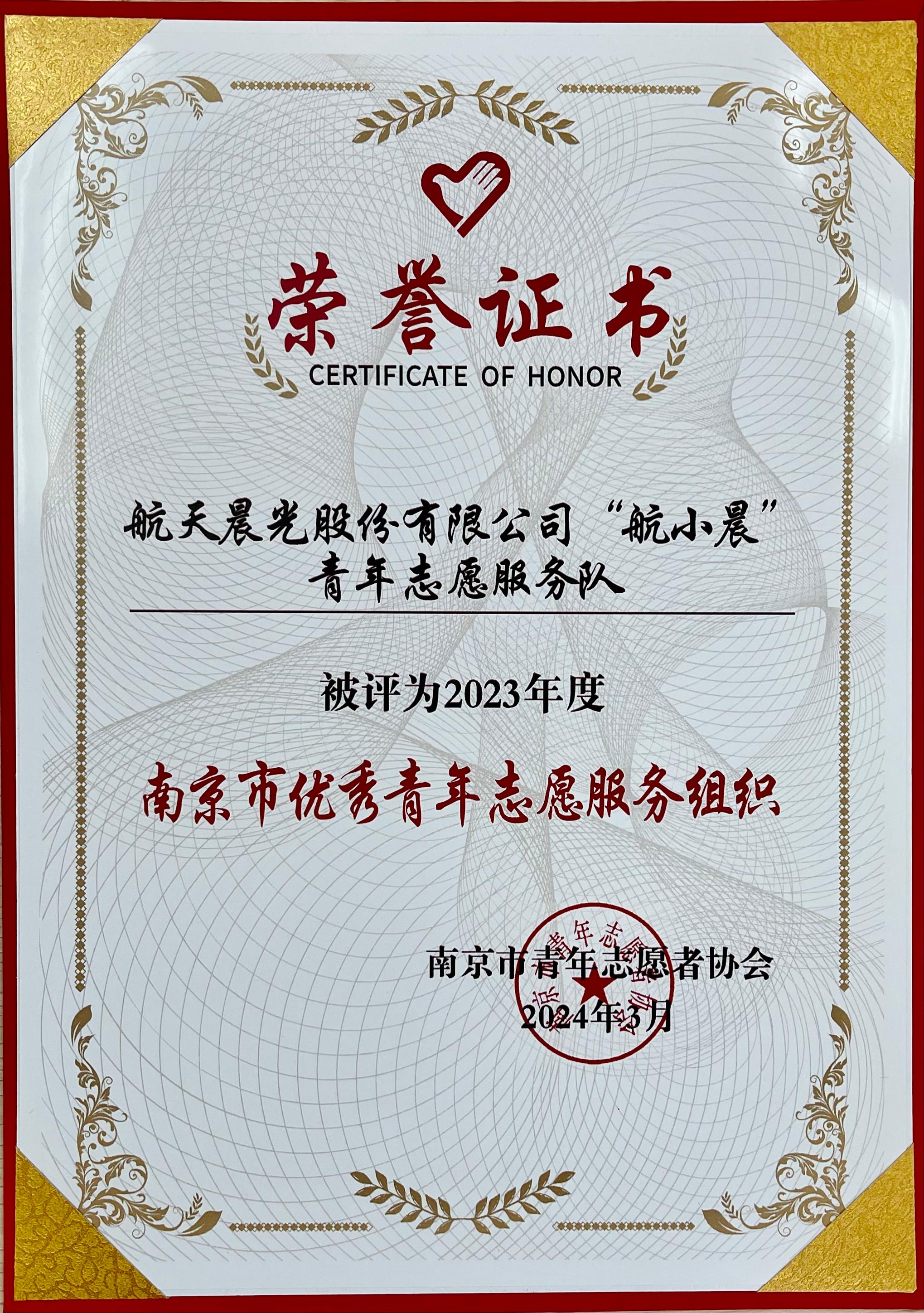 近日,南京市青年志愿者協(xié)會公布2023年度南京市青年志愿者服務(wù)典型尋訪活動結(jié)果,經(jīng)廣泛動員、擇優(yōu)推薦、集中評審,航天晨光“航小晨”志愿者服務(wù)隊(duì)獲評2023年度南京市優(yōu)秀青年志愿服務(wù)組織,一名青年獲評2023年度南京市優(yōu)秀青年志愿者。