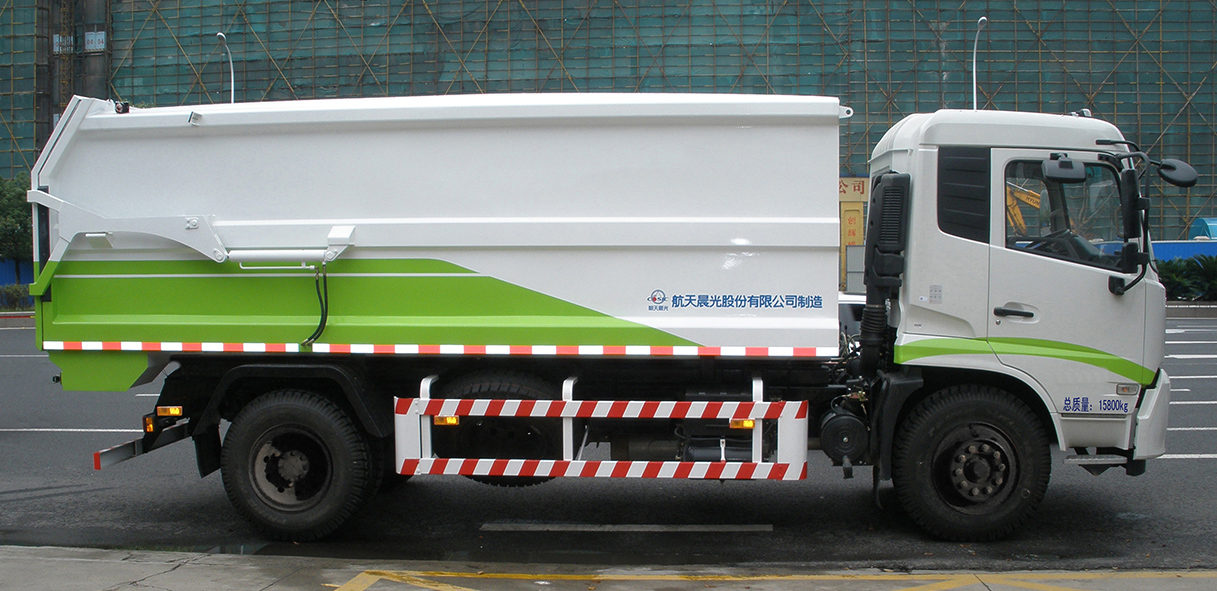 CGJ5160ZDJE5型自卸式垃圾車是液壓后傾式自卸車,采用傾翻卸料方式。垃圾箱設(shè)有液壓開啟上開蓋,采用液壓傳動,能夠保證垃圾運輸過程中的密閉性。整個裝卸過程機械化程度高,裝載量大、操作方便、動作平穩(wěn)、安全可靠、維修方便。后門鎖緊機構(gòu)機械鎖緊,隨著廂體舉升和下降,自動打開和鎖緊。能有效的防止在裝載運輸過程中的垃圾飛揚,避免二次污染。整車造型新穎、美觀、大方、操作簡單,卸料快捷、干凈、駕乘舒適。