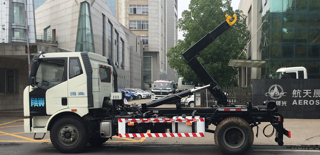 CGJ5160ZXXE4/CGJ5160ZXXE5型車廂可卸式垃圾車是收集居民小區(qū)、街道等處的城市生活垃圾并將其送往垃圾中轉(zhuǎn)站或?qū)⒗修D(zhuǎn)站箱體運至垃圾處理場的專用車輛。